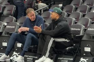 曾共事9年!勇士助教斯托茨和昔日爱徒利拉德赛前场边聊天